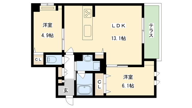 LDK13.1帖、和室6.1帖、洋室4.9帖 |